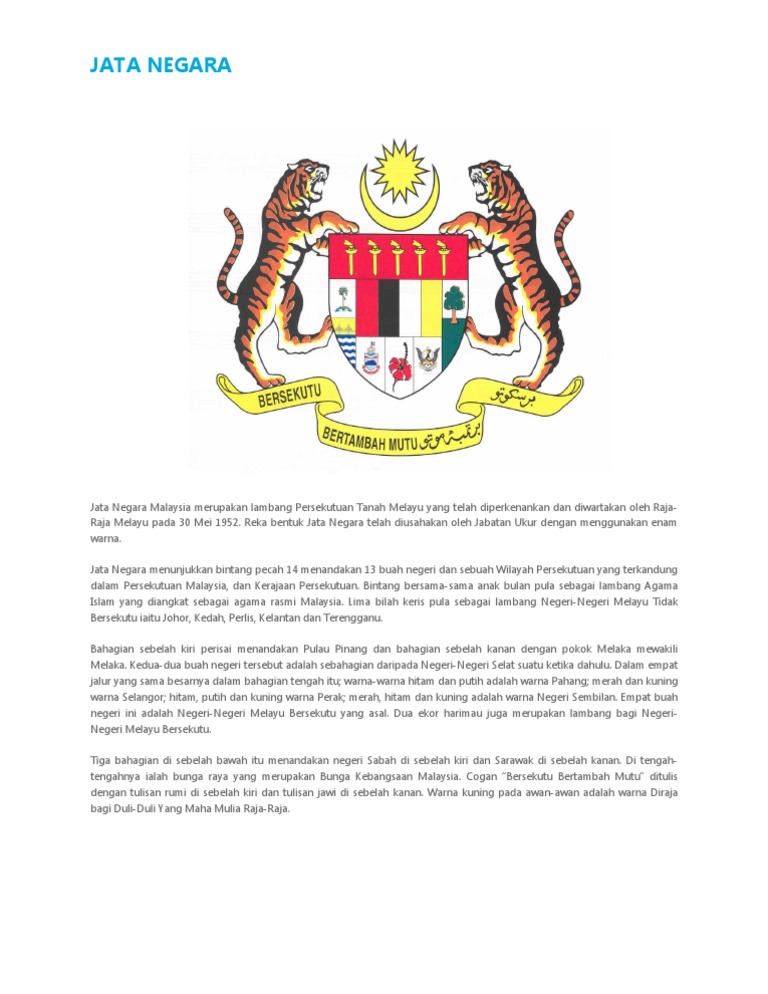 Baca versi flipbook dari UNIT 8 JATA NEGARA. Cogan kata Jata Negara. Lima bilah keris pula sebagai lambang Negeri-negeri Melayu Tidak Bersekutu iaitu Johor Kedah Perlis Kelantan dan.