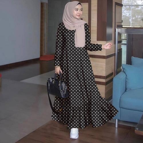 Jual Gamis Syar I Asdf Dress Muslim Polkadot Polkadot Hitam Putih Dress Polka Indonesia Shopee Indonesia
