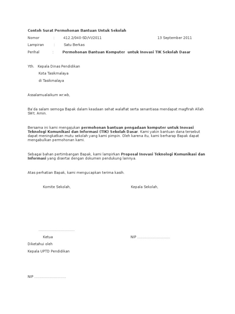Contoh Surat Permohonan Bantuan Untuk Sekolah Pdf